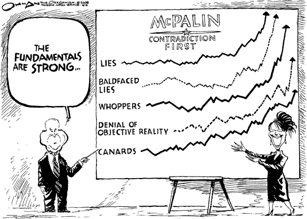 On the other side of the coin, if McCain continues his about face on honor and Palin continues to be appear scripted and limited to the rote lines, fewer of the American people will have confidence in their ability to redirect the course of this country.