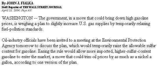 The cover piece for today's New York Times Magazine is a lengthy article on the Bush administration's relaxing of the rules on upgrading emission standards for power plants. The conclusion of the article is: