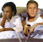 "President Bush was able to watch Condoleezza Rice's testimony after all. It seems that Sponge Bob Square Pants was a rerun."
