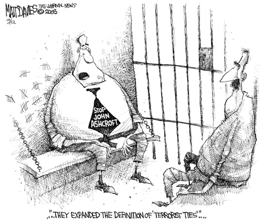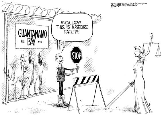 Yesterday, the Supreme Court heard oral argument regarding the authority of the Bush administration to hold two Americans as "enemy combatants". The Americans are being held at an army brig in South Carolina ( and numerous non-Americans are being held at Guantanamo) incommunicado, without any access to legal representation, and with no review outside of the administration (judicial or otherwise) of the facts to determine whether there is a basis to connect them with al Qaeda or the Taliban. Yesterday's case only questioned the deprivation of rights of U.S. citizens. Clearly, the U.S Constitution does not protect foreigners who are captured outside of the U.S. and not brought to the U.S. However, by denying the Guantanamo prisoners even the rights guaranteed POW's under the Geneva Convention, the United States has abdicated any claims of leadership for justice it might have had in the eyes of the world. George W. Bush has spoken with the zeal of a missionary about freedom being a right given to all human beings not by the U.S. but by God. While I disagree with Bush about the role of the U.S. serving as the hand of God bringing freedom to the oppressed (at least to those in oil-rich countries), I agree that freedom and justice are fundamental rights to which all people are entitled to aspire. How can we effectively advocate for freedom and justice when we deny to human beings even the most basic elements of due process? Bush and Cheney and Ashcroft would argue that, in a condition of war, our security demands that such people be held without any recourse. I would suggest that extending the umbrella of justice to our most hated enemies would set an example for the world, reclaim the moral high ground and, in the end, be an antidote to the contempt for the U.S. in many parts of the world. It is good to do right.