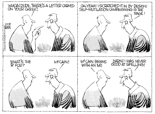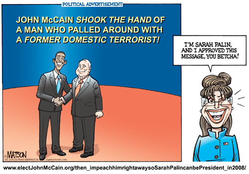 ...in which case McCain has consistently lied to the American people to bolster his chances of being elected.  But, gee whiz, what would justify making this serious accusation against this war hero, this self-described straight-talking maverick, this man of honor?  Well, after his 2000 presidential bid was over, McCain called for the removal of the Confederate battle flag from atop the South Carolina Statehouse, acknowledging that his refusal to take such a stance during his primary battle for South Carolina was a "sacrifice of principle for personal ambition.  I feared that if I answered honestly, I could not win the South Carolina primary. So I chose to compromise my principles." - CNN   Do you think that the 2008 McCain, chastened by his moral lapse in 2000, is less ambitious and is now committed to the high road (as in I'd rather lose an election than lie to the electorate)?  If you are at all inclined to believe that McCain has truly reformed, I challenge you to reconcile that belief with yesterday's ad released by the McCain Campaign (LINK) which accuses Obama of supporting comprehensive sex education for kindergarten children when, in fact, the legislation cited in the ad provided for educating kindergarteners to defend themselves against sexual predators and was supported by a coalition of education and public health organizations, including the Illinois Parent Teacher Association, the Illinois State Medical Society, the Illinois Public Health Association and the Illinois Education Association. - New York Times