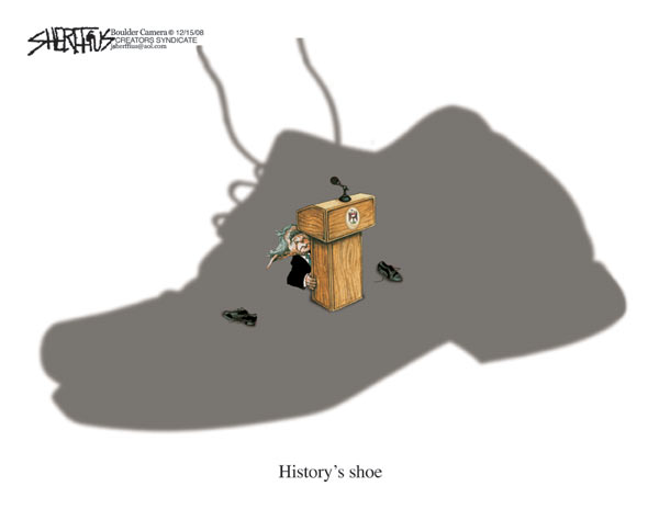 "Anyway, the conspiracy theories have begun. Oliver Stone is already making a movie about the shoe-throwing incident. He thinks there was a second shoe-thrower, because that journalist threw two shoes in four seconds. That's impossible." -  Craig Ferguson
