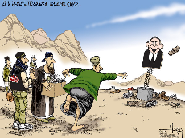 "Have you watched this tape? Some people are criticizing the Secret Service, because the shoe thrower caught them off guard. The man was able to throw a second shoe. A spokesman for the Secret Service said, 'Sorry, but we were laughing our asses off.'" -  Conan O'Brien