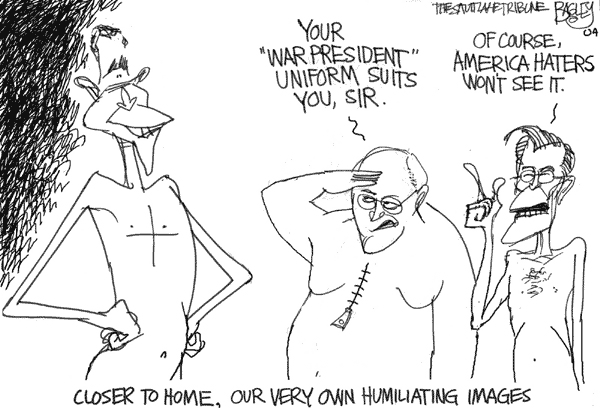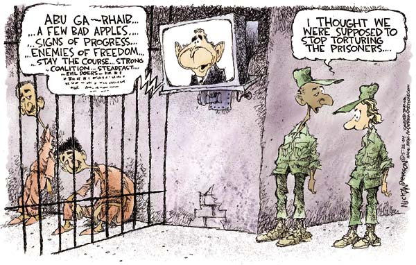 Now, we have the photographs documenting horrors in U.S. run prisons in Iraq. That the conduct depicted in the photographs may be isolated incidents (as opposed to the tip of the iceberg) is of no consequence to the Islamic world which welcomed the evidence to support that which they already believed - Americans are infidels against whom a holy war, an infitada, must be waged. Just as images of 9/11 fired the patriotism of Americans, the abuses of Iraqi prisoners will be a boon to recruiting by al Qaeda and other terrorist organizations. Moreover, any chance that the U.S. had of becoming an "honest broker" for peace in the Middle East has been set back irreparably.