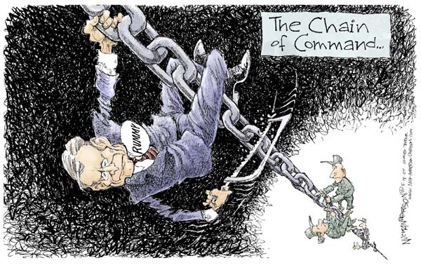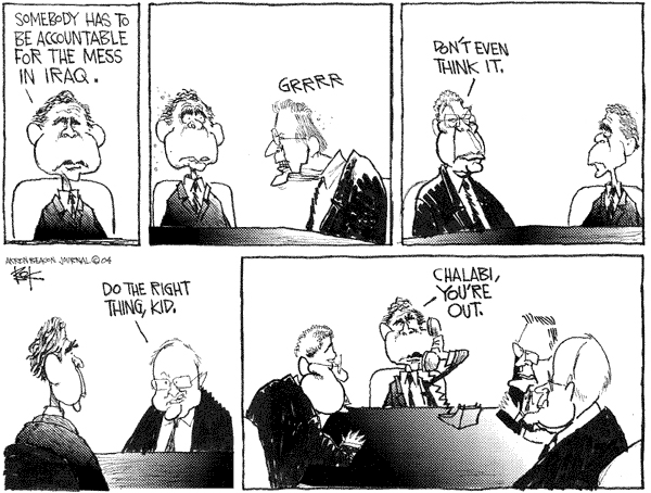 But there is accountability!Before the war in Iraq, General Eric Shinseki, then the army chief of staff, said that Bush was going to need "several hundred thousand" soldiers to occupy and stabilize the country. The general was denounced by Secretary of Defense Donald Rumsfeld and then ushered into retirement.